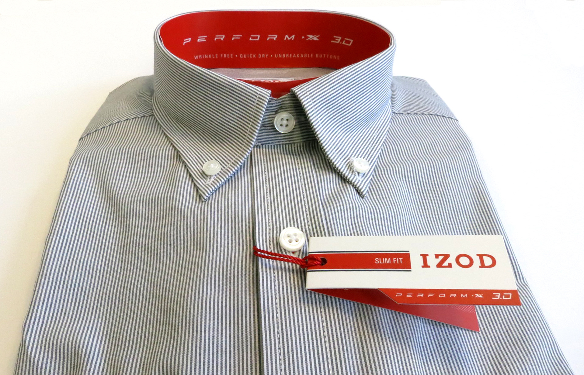 I designed the collar band and hang tag in this IZOD dress shirt to compliment the IZOD PERFORM-X performance qualities.